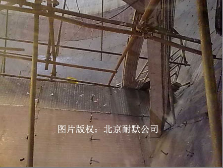 (2)煤礦原煤倉耐磨襯板正在安裝復(fù)合耐磨襯板